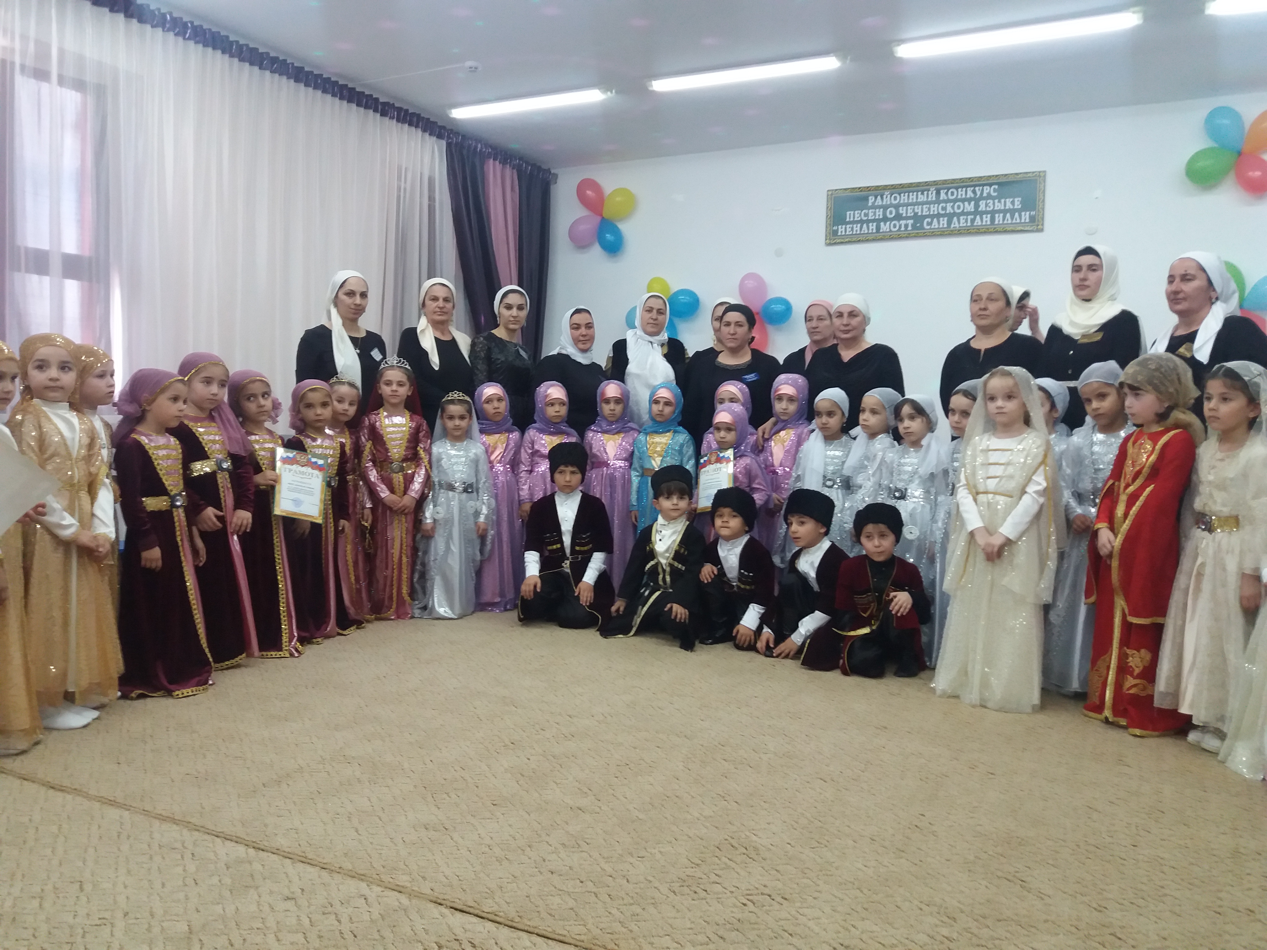 Воспитанники МБДОУ «Детский сад №1 «Улыбка», под руководством музыкального руководителя, приняли участие в районном конкурсе песен о чеченском языке «Ненан мотт – сан деган илли», который проходил в МБДОУ «Детский сад №1 «Зама» с.Энгель-Юрт 22.04.2016.