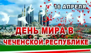 16.04.2023Этот день – День Мира, во многом состоявшийся благодаря усилиям Главы Чеченской Республики Р.А.Кадырова и поддержке Президента Российской Федерации В.В.Путина, стал основанием окончательного установления на многострадальной чеченской земле мира, спокойствия, согласия и залогом будущих созидательных преобразований.