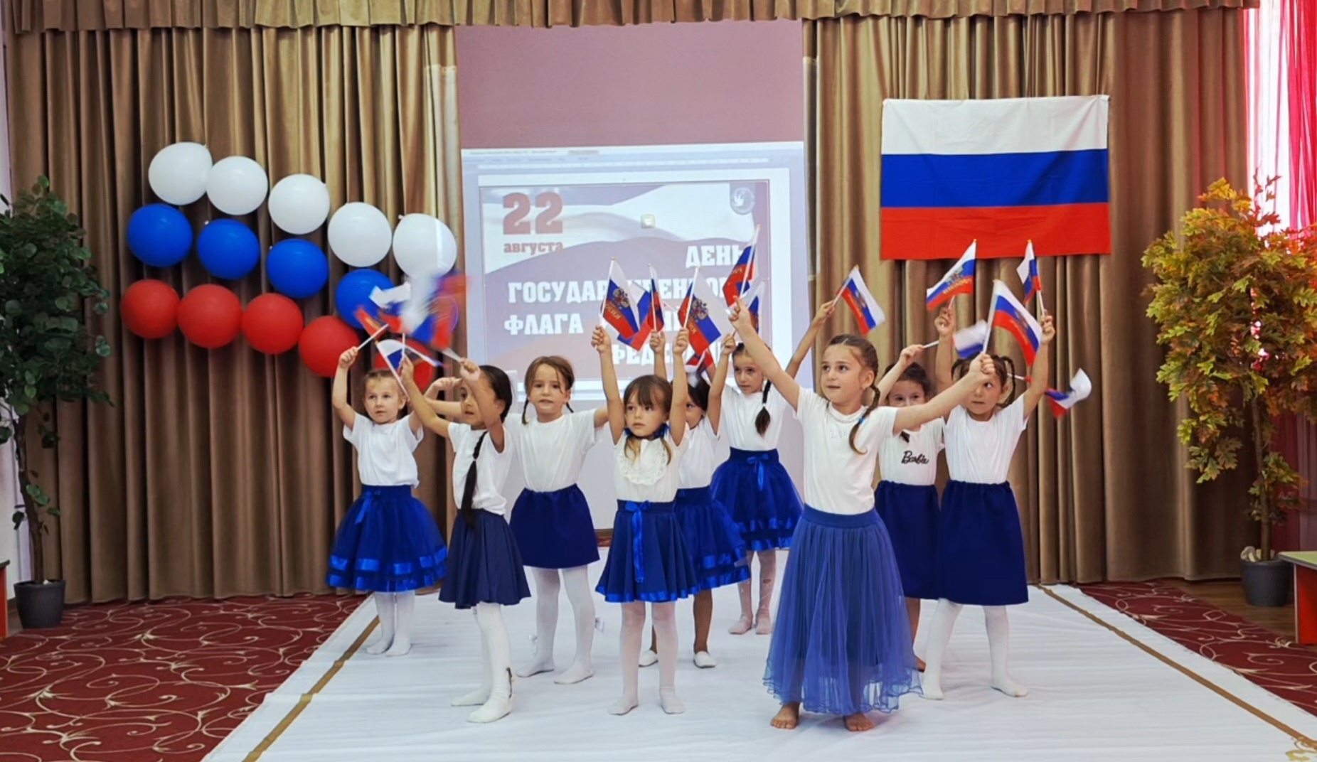 20.08.2025В МБДОУ "Детский сад #1 "Улыбка" прошло мероприятие, приуроченное "Дню Российсконо флага",где активное участие приняли воспитанники старшей группы "Ромашки" под руководством воспитателей Даларовой З.С. и Радуевой Ф.С. Приобщение детей к государственной символике РФ - это одна из основных задач в патриотическом воспитании, в уважительном отношении к символике своей страны - флагу, гимну, гербу.