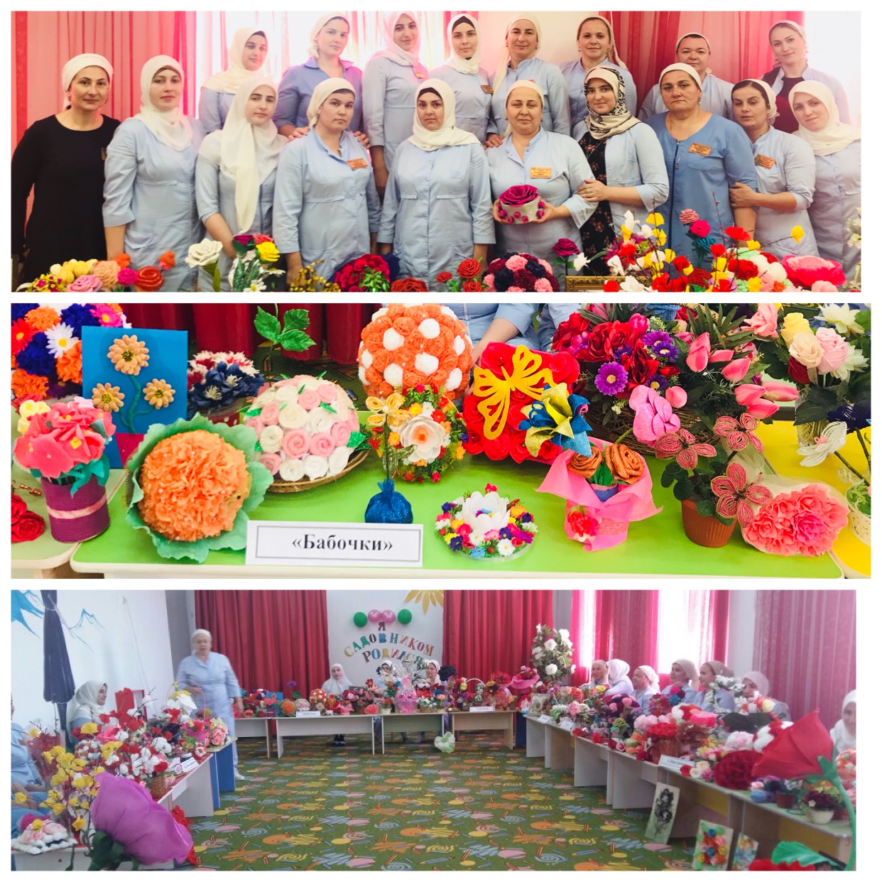 Дети вместе с воспитателями показали, как они умеют вязать, конструировать, собирать букеты цветов, используя разнообразные материалы и техники.